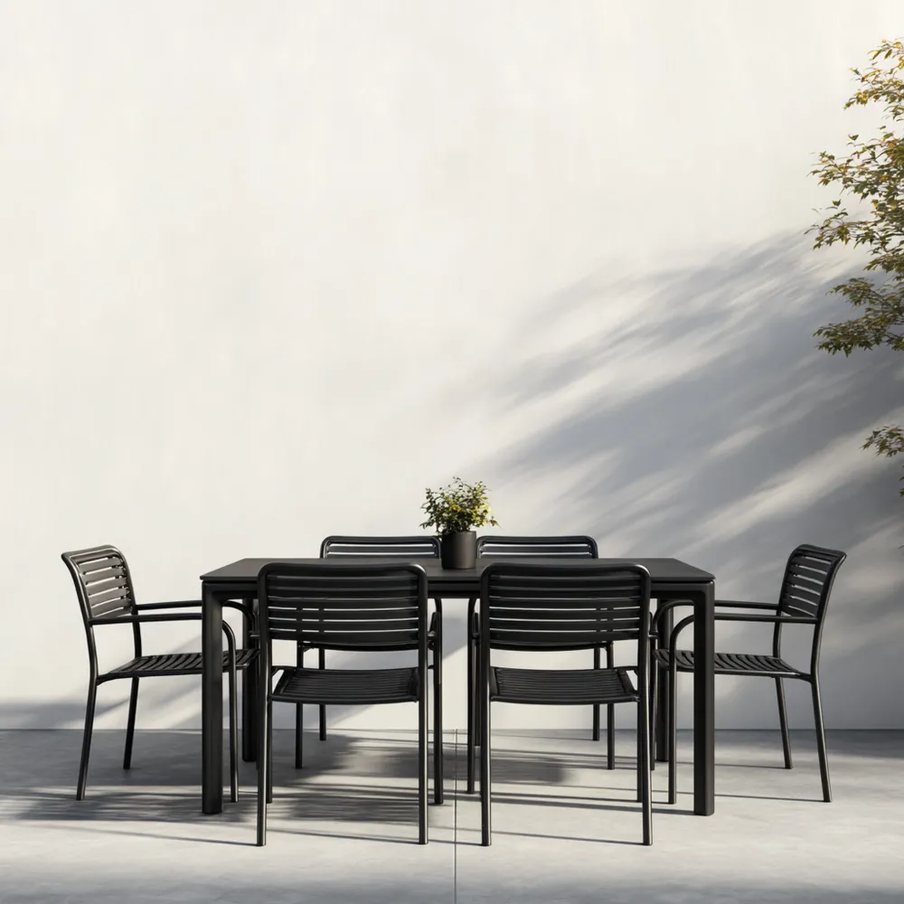 Garten-Esstisch-Set Metall 150x90x75 cm - Schwarz - Modernes Design