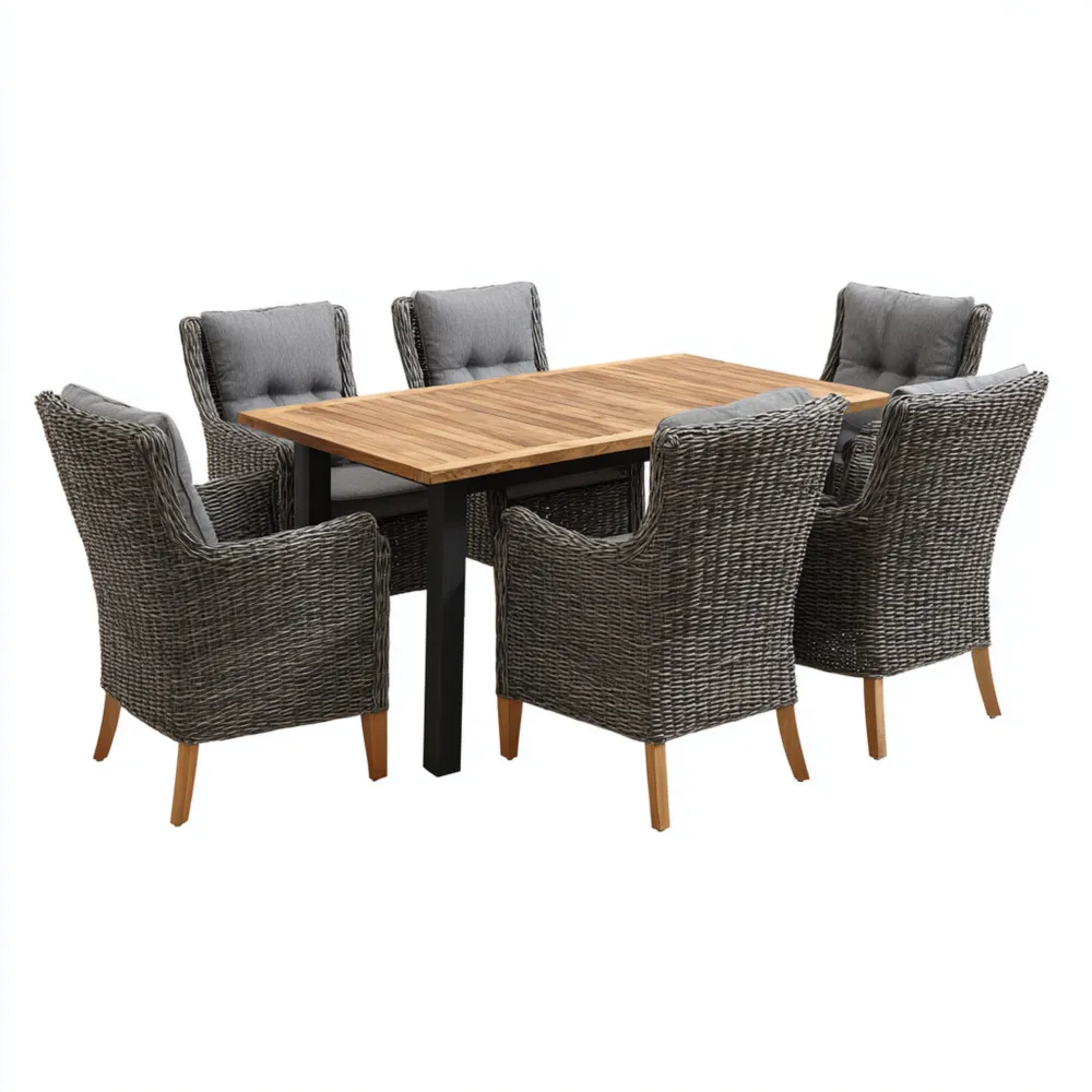 Garten-Esstisch-Set Teakholz 6-Sitzer – 180x90x75 cm – Grau/Braun