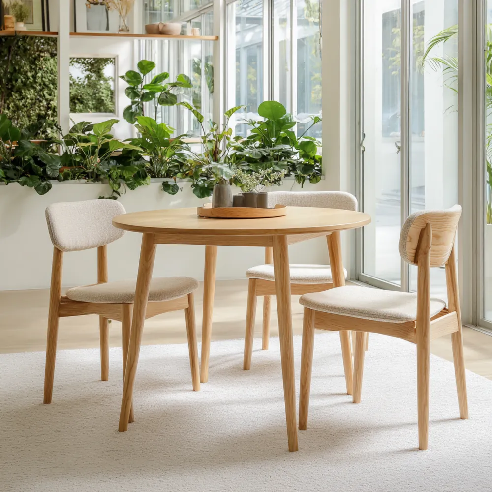 Esszimmer-Set Holz 120x120x75 cm - Beige - Skandinavisches Design