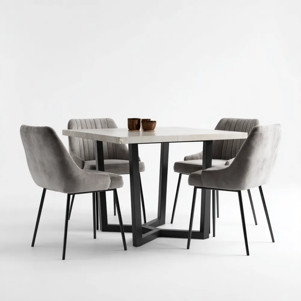 Esszimmer-Set Velours 120x80x75 cm – Grau – Modernes Design