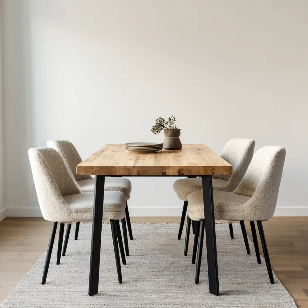 Esszimmer-Set Massivholz 150x90x75 cm 4 Stühle - Eiche/Schwarz/Creme - Modernes Design