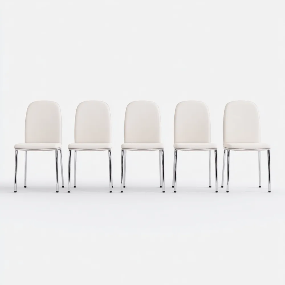 Esszimmerstuhl Set von 5 - Kunstleder Weiß - Chromgestell - 45x50x80 cm - Modernes Design