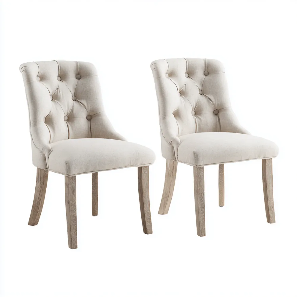 Esszimmerstuhl Set – Leinenstoff 48x62x94 cm – Beige – Klassisches Design